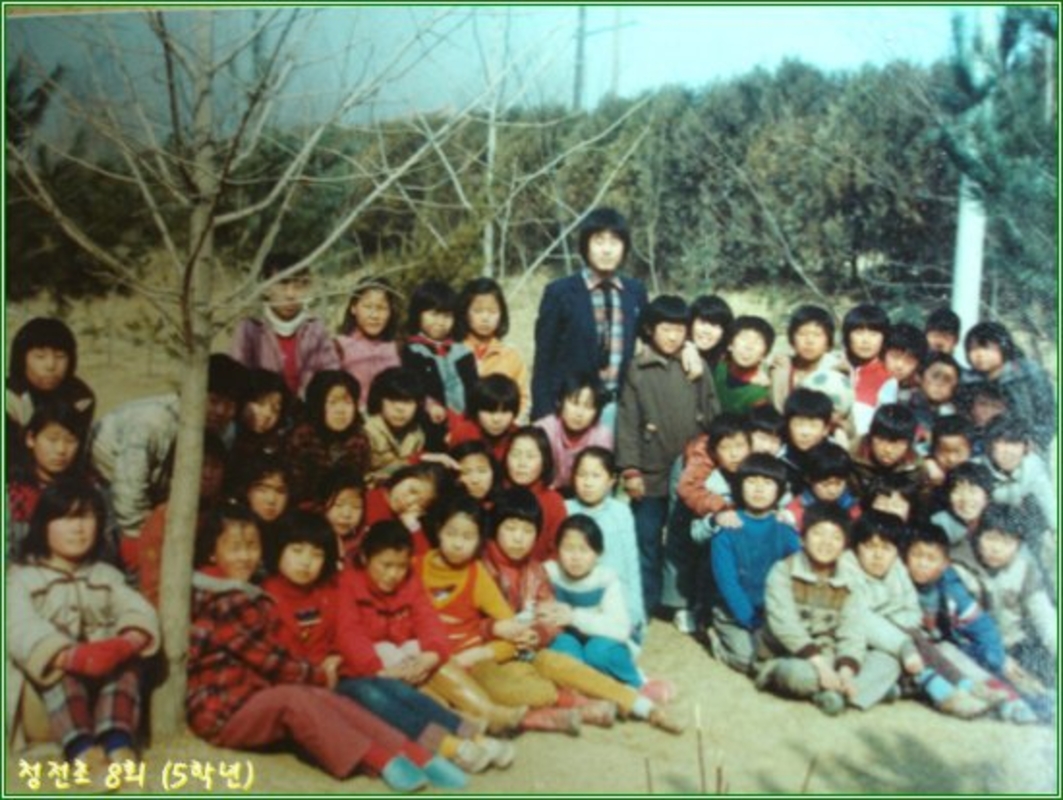 청전8회 5학년 민방공 훈련때 마다 대피하던 후관 뒤 수목원 잔디밭에서(1981)