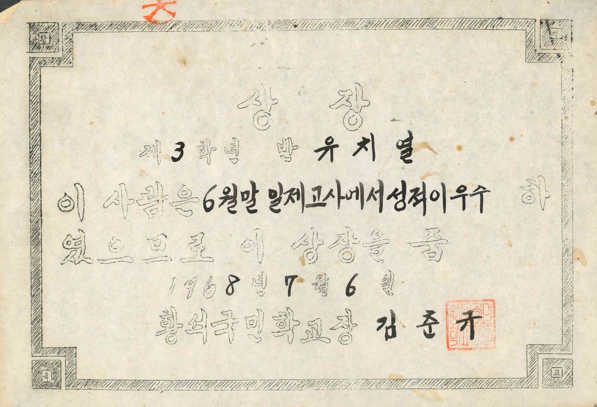 황석분교 성적우수상(21회 졸업생 류치열님 1968)